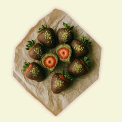 Juicy strawberries dipped in rich chocolate. Available in half dozen or dozen boxes.