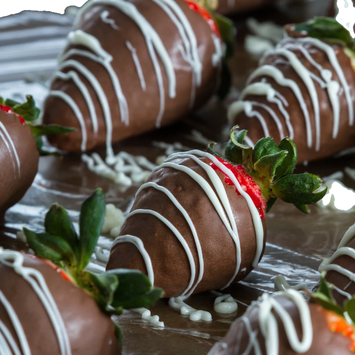 Gourmet strawberries dipped in chocolate and adorned with edible, perfect for gifting or glam events.
